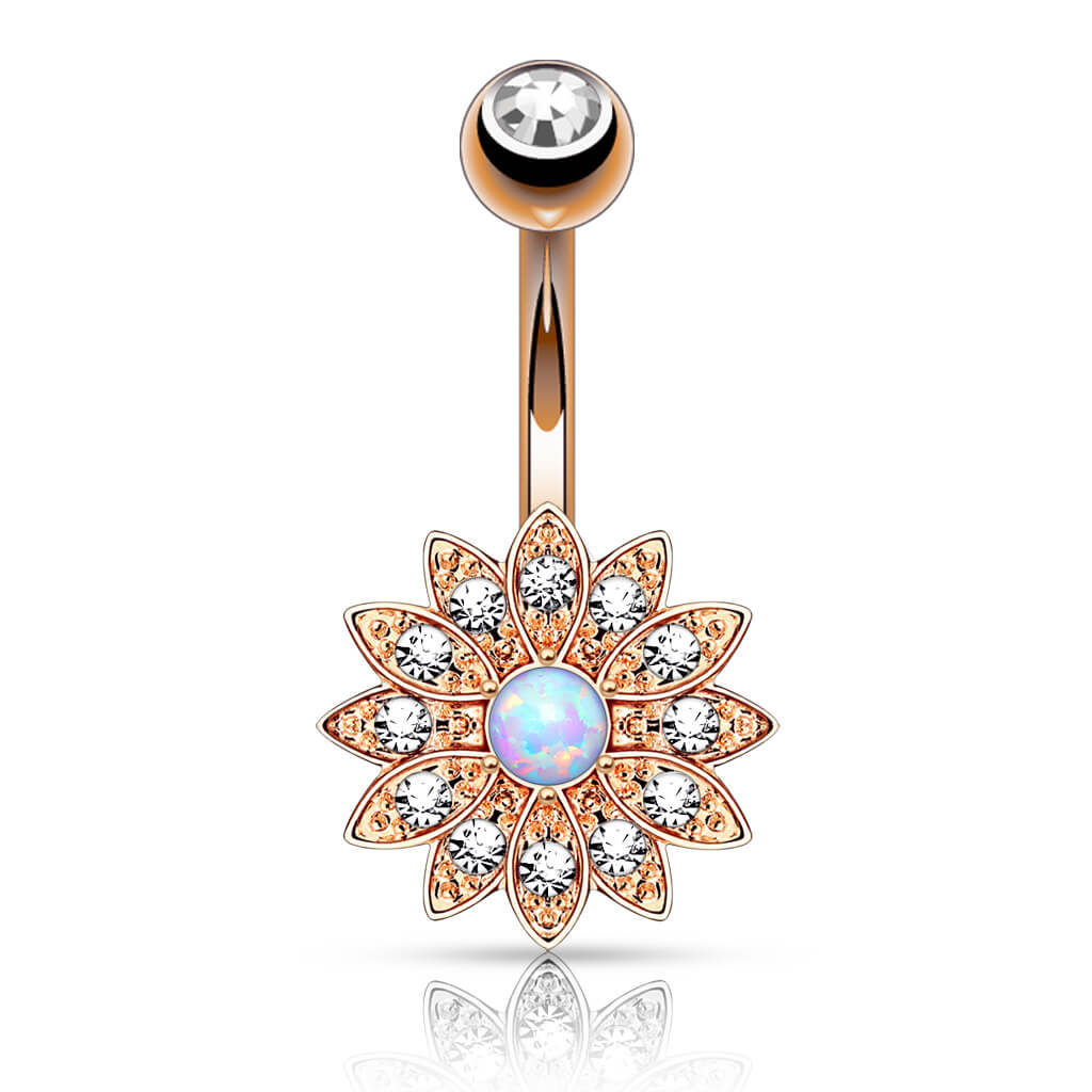 Belly Button Piercing Flower Zirconia Opal