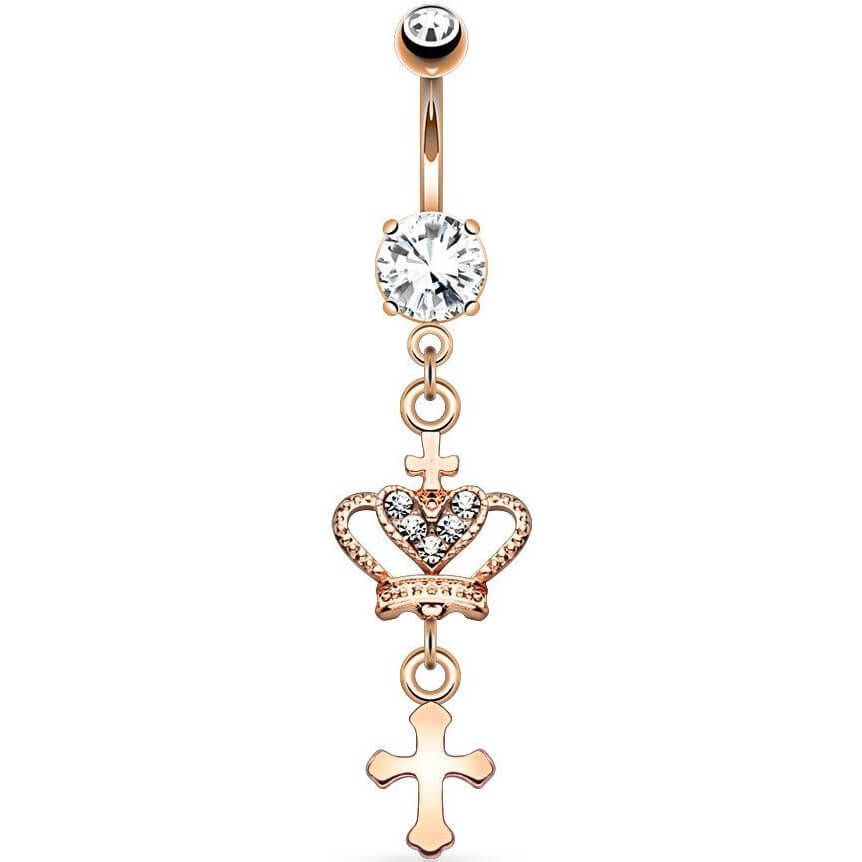 Belly Button Piercing Cross Crown dangle Zirconia