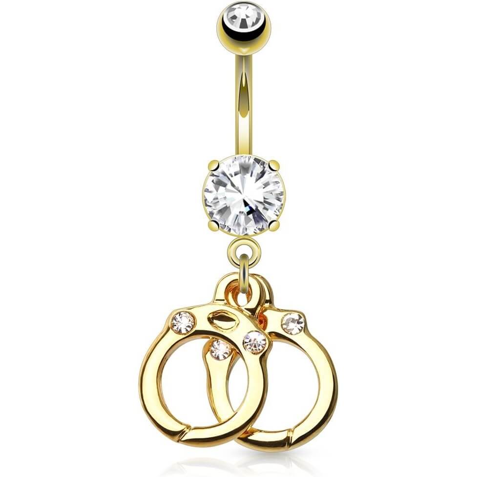 Belly Button Piercing Handcuffs dangle Zirconia Gold