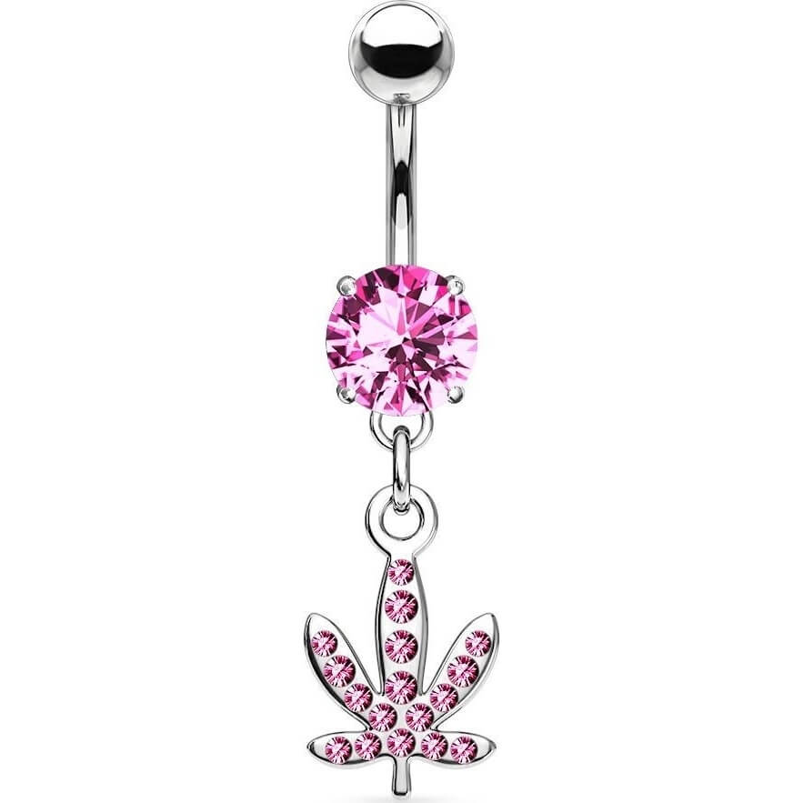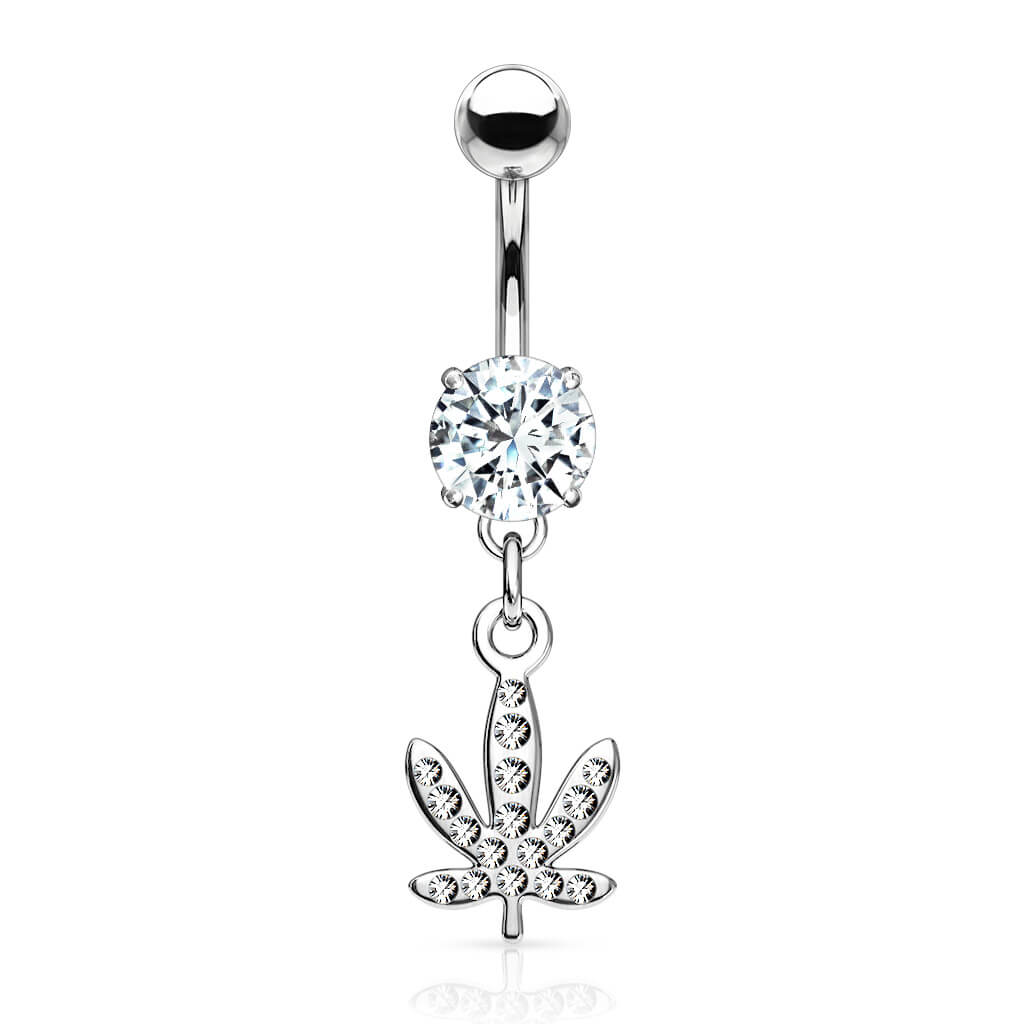 Belly Button Piercing Hemp Leaf dangle Zirconia Silver