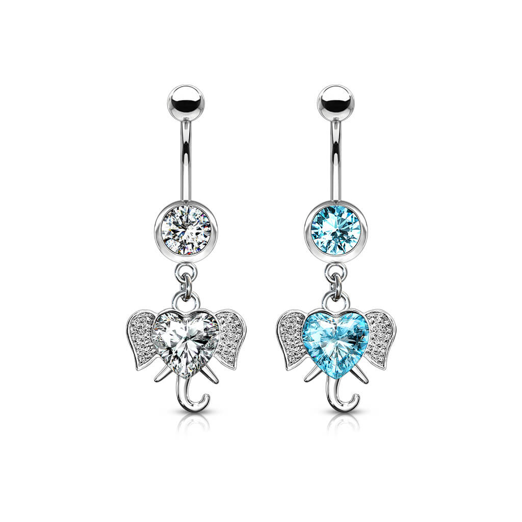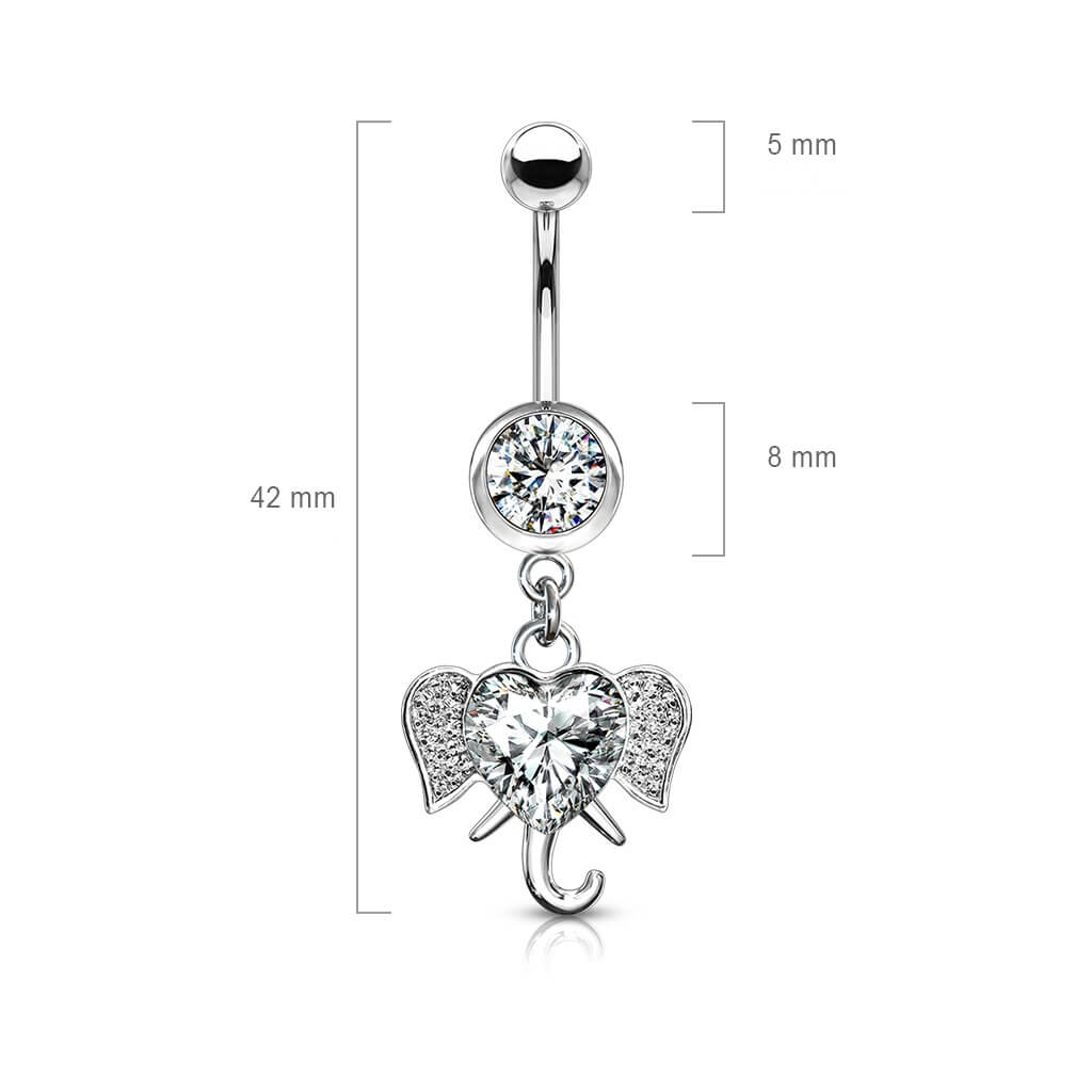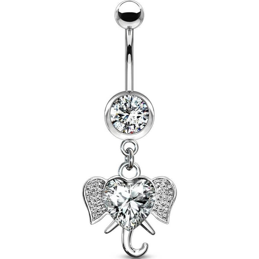 Belly Button Piercing Elephant dangle Zirconia Silver