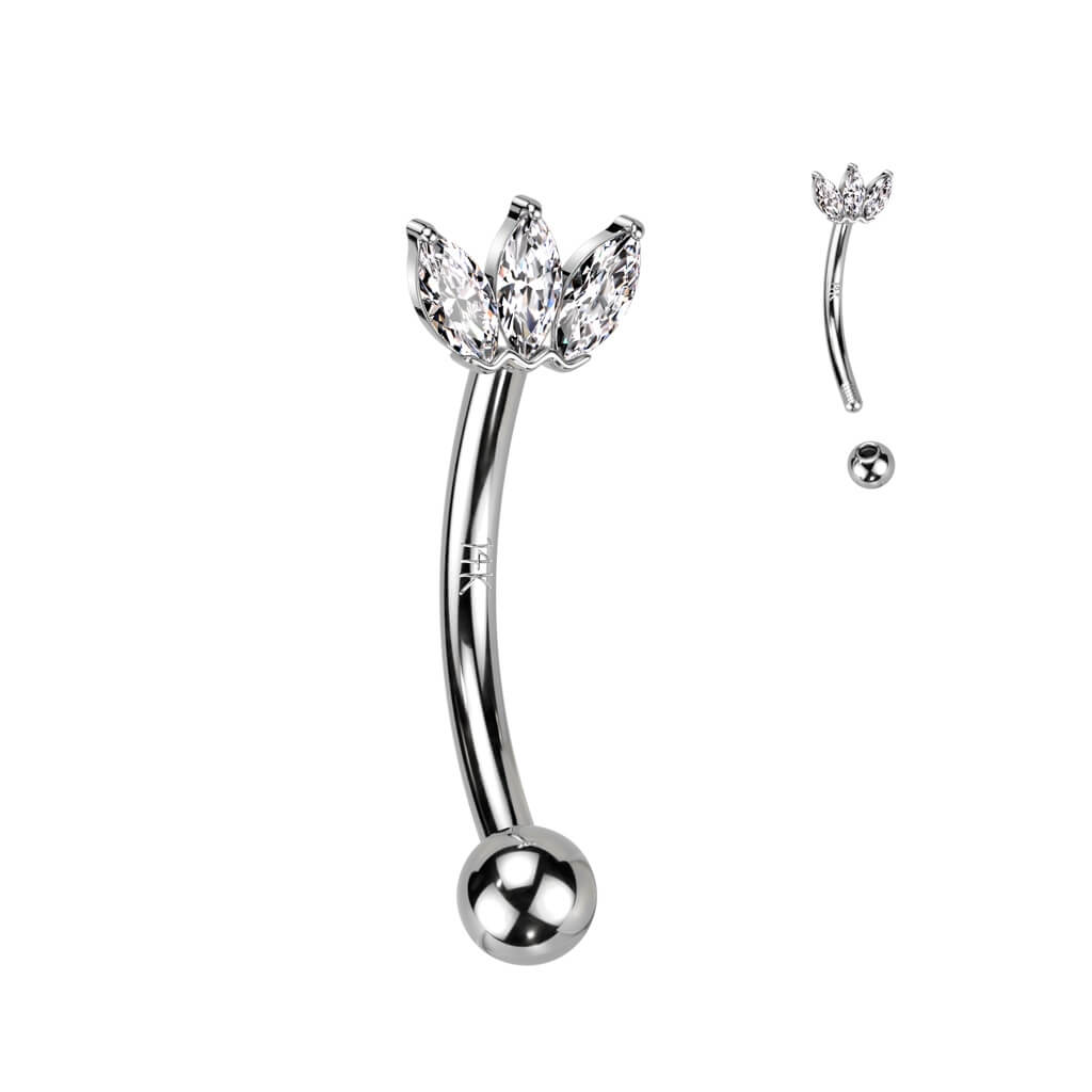 Solid Gold 14 Carat Eyebrow Piercing 3 Zirconia