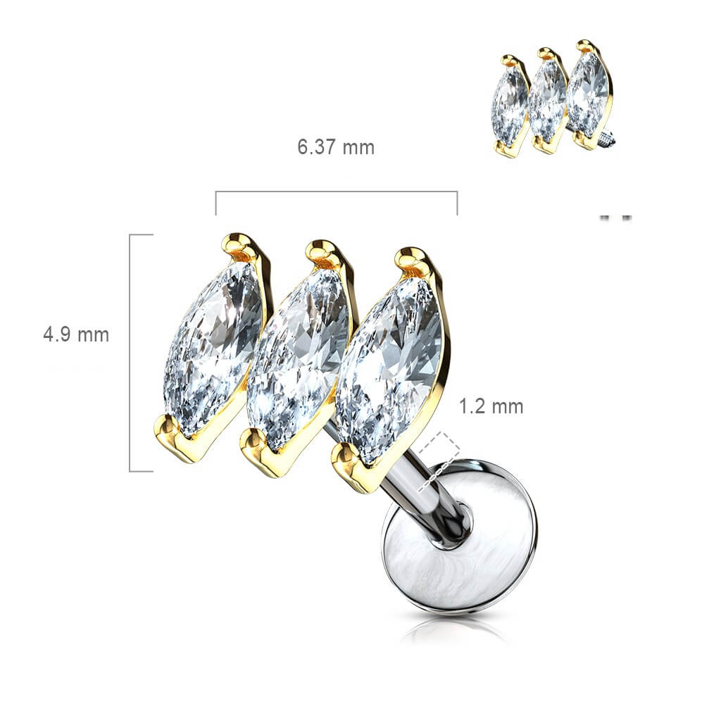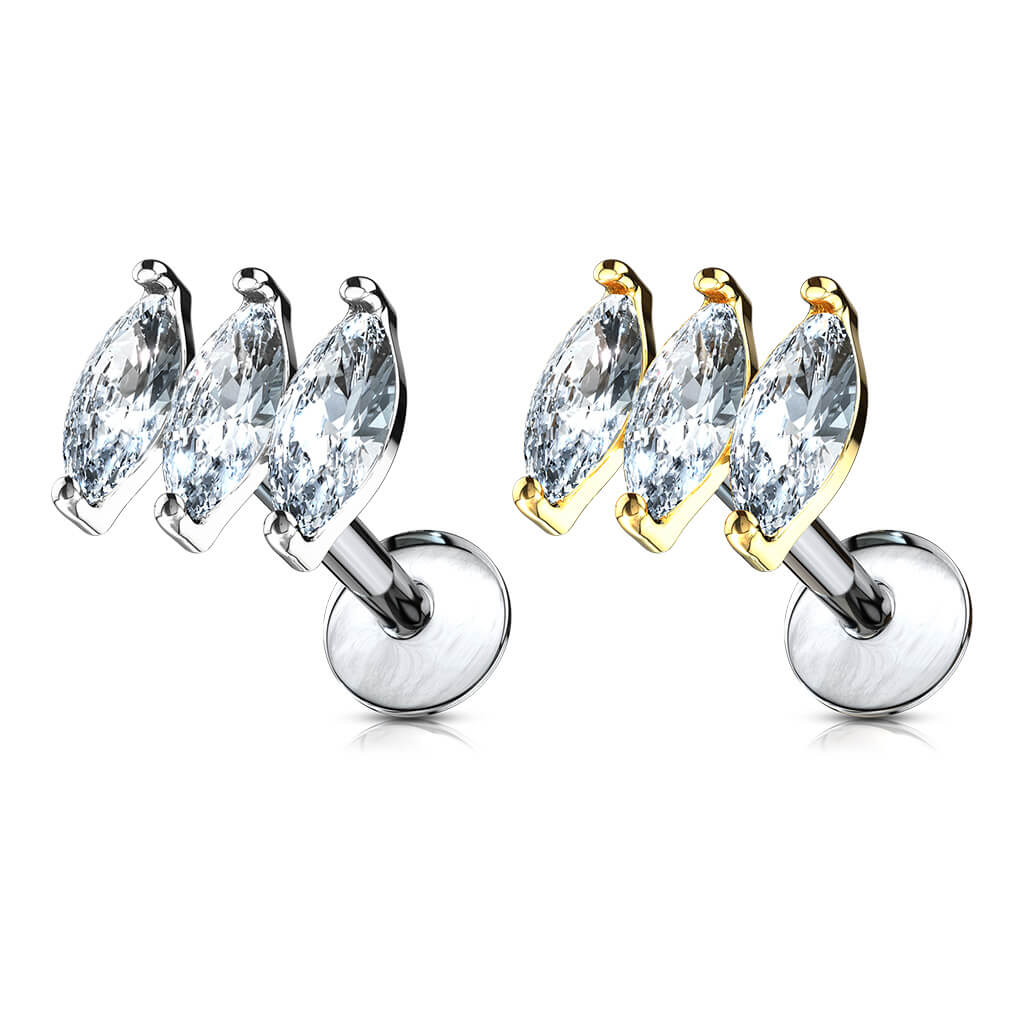 Labret Marquise Cut 3 Zirconia Internally Threaded