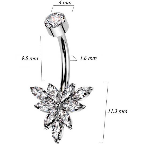 Titanium Belly Button Piercing marquise zirconia Internally Threaded