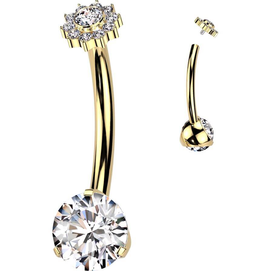 Titanium Belly Button Piercing flower zirconia Internally Threaded