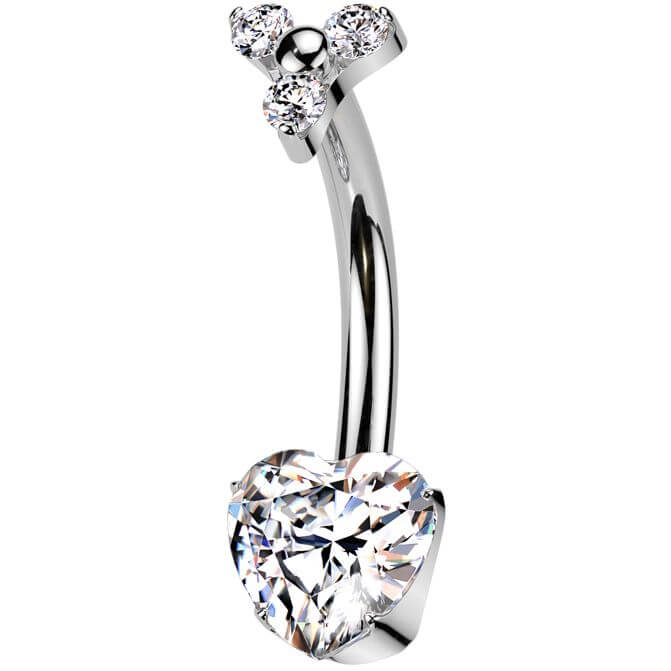 Titanium Belly Button Piercing heart zirconia Internally Threaded