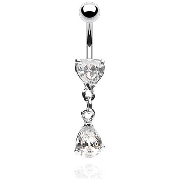 Piercing ombligo Corazón con Gota colgante Circonita Plata