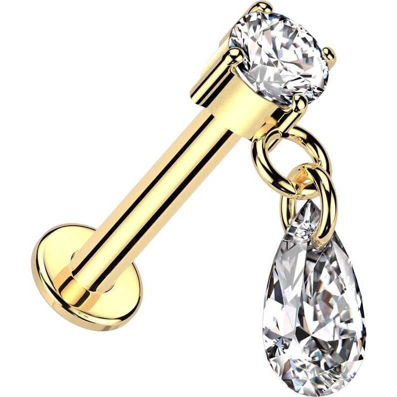 Oro 14kt Colgante lágrima circonita Rosca interna Labret