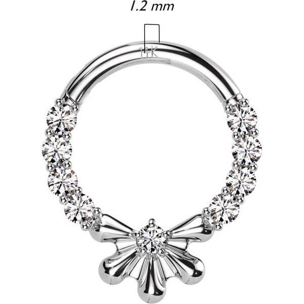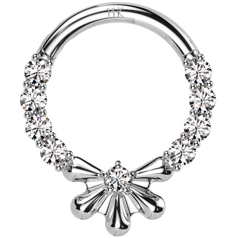 Oro 14kt Anillo Circonitas y Flor Central Clicker