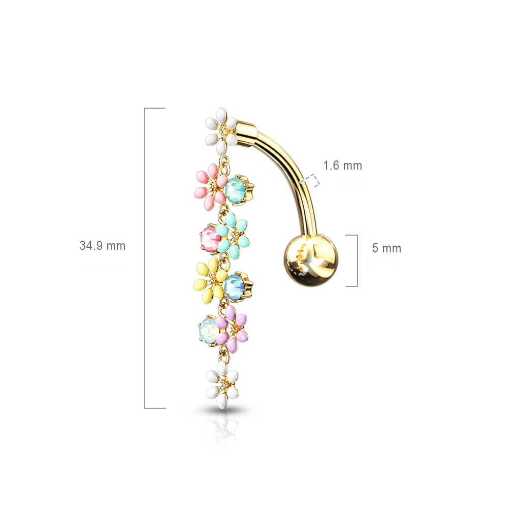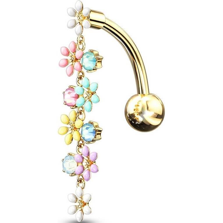 Piercing Nombril Pendentif Fleur Zircone Inversé