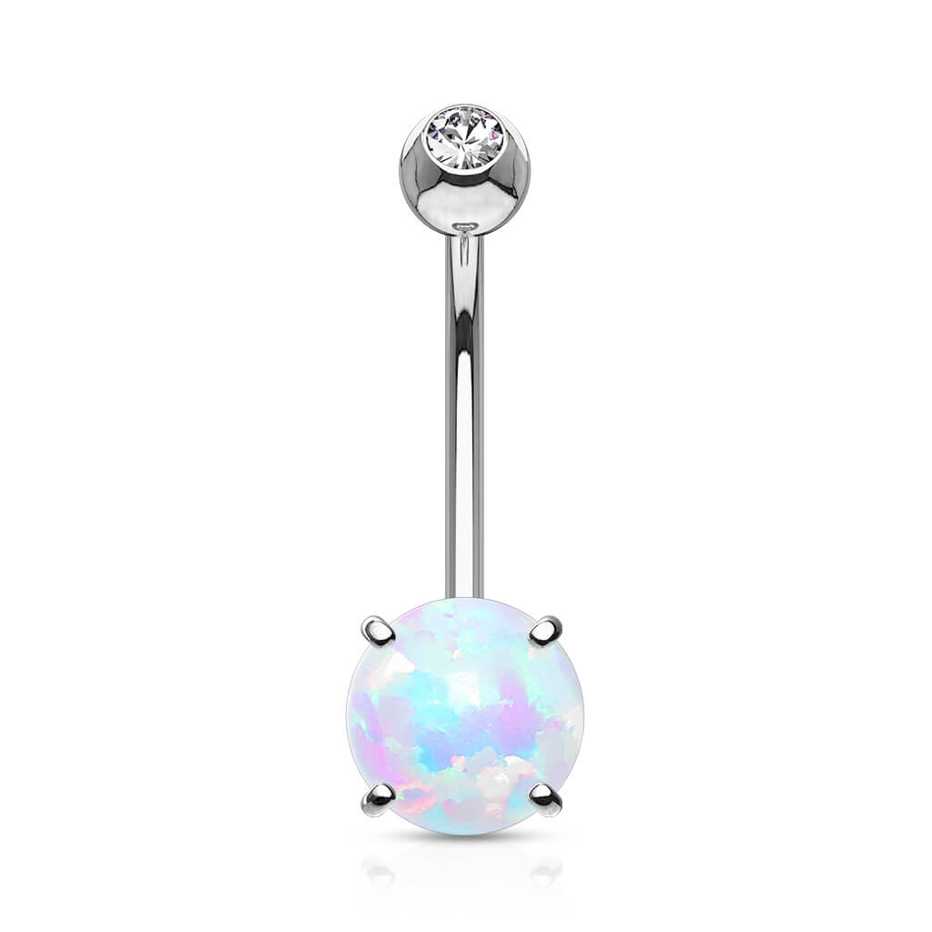 Solid Gold 14 Carat Belly Button Piercing Round Opal