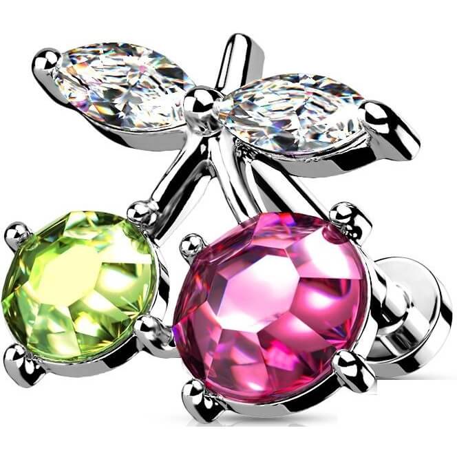 Labret Cerise Zircone Argent Filetage Interne