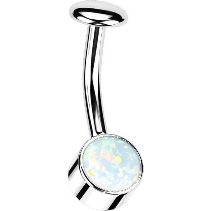 Titane Piercing Nombril Opale Serti Clos Argent Enfoncer