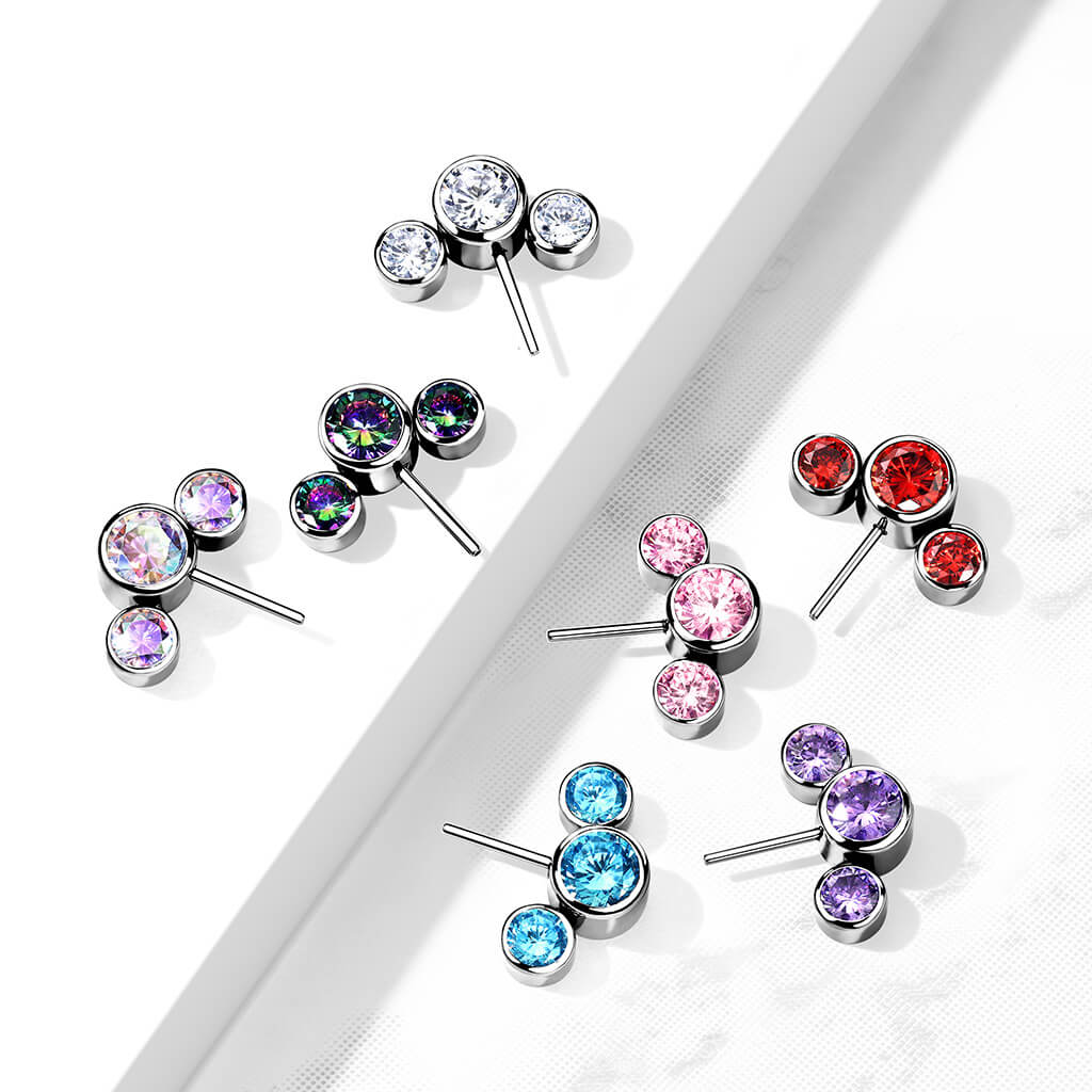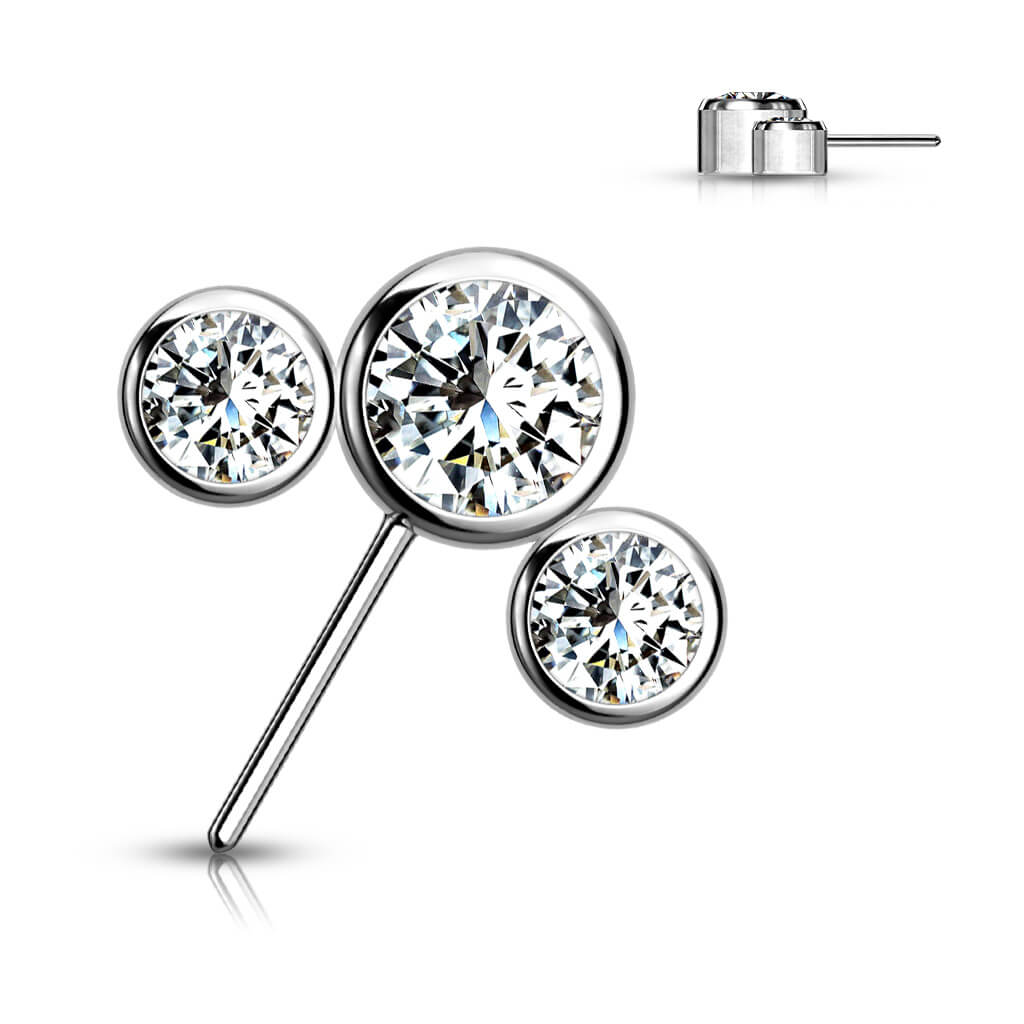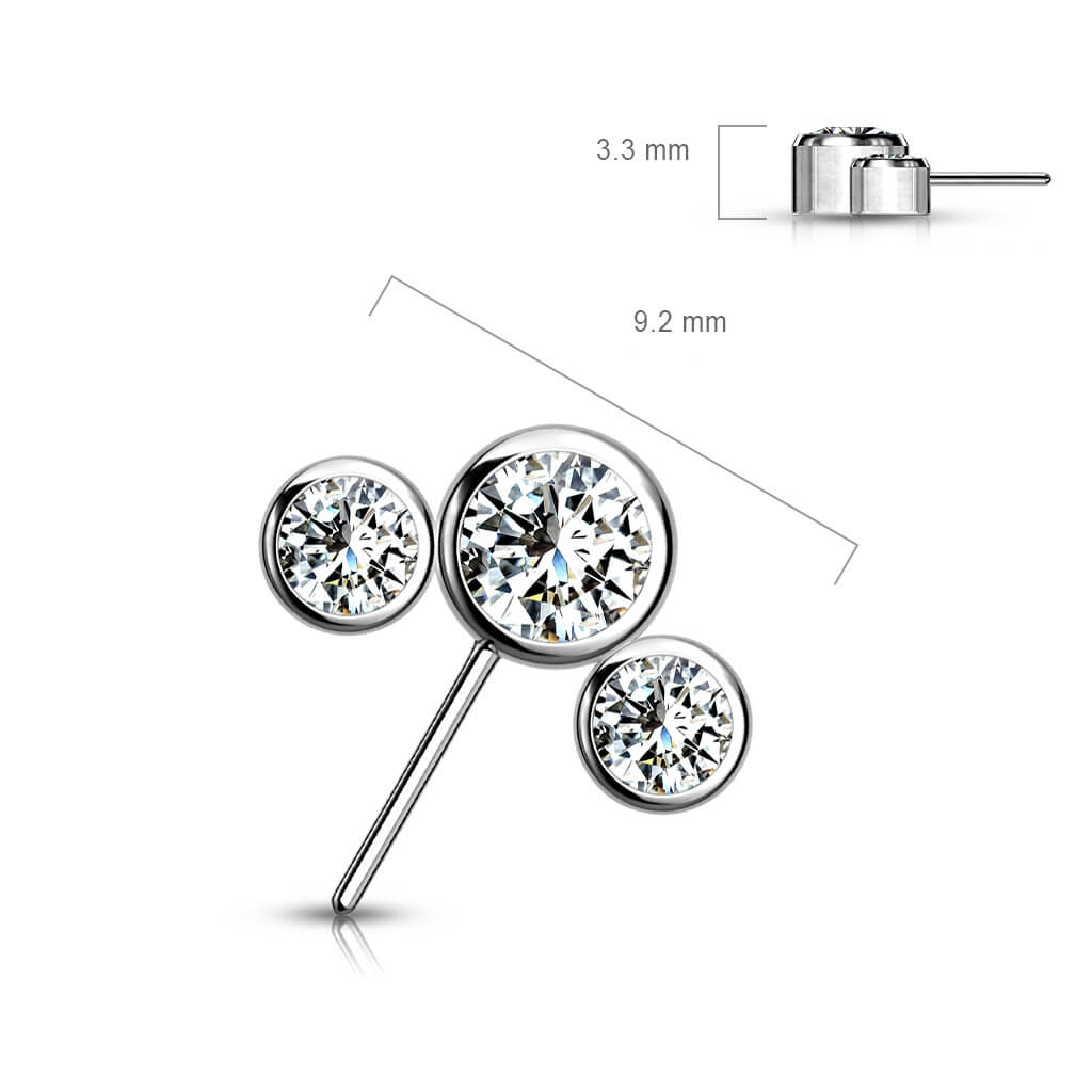 Titane Embout Embout 3 Zircones Argent Enfoncer