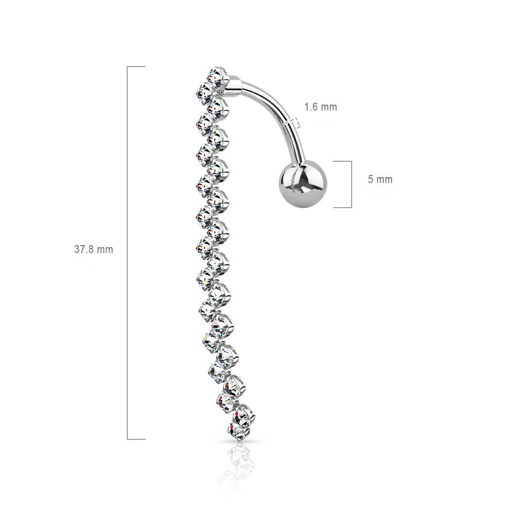 Piercing Ombelico Pendente a Zig Zag di zirconi