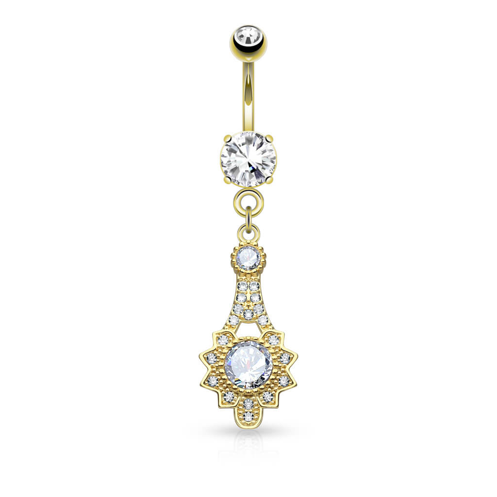 Piercing Ombelico Pendente con sole tribale di zirconi
