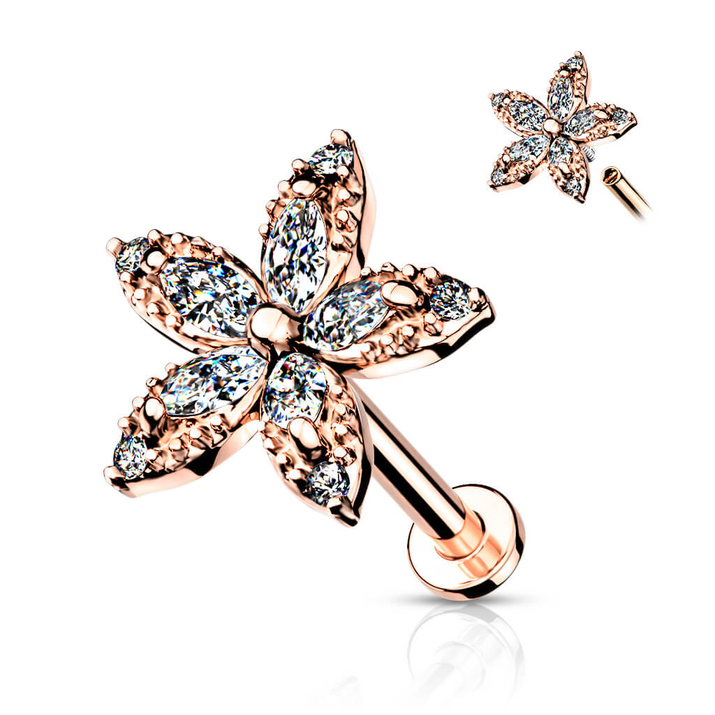 Labret Fiore di zircone Filettatura Interna