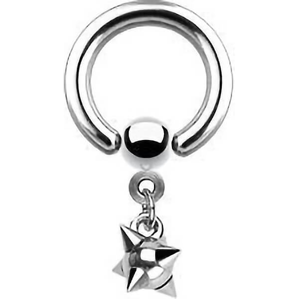 Anello Piercing Argento con sfera borchiata pendente Perla Prigioniera