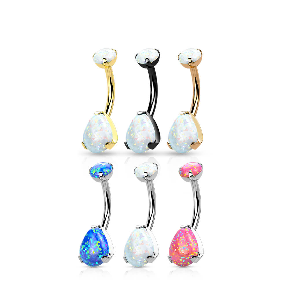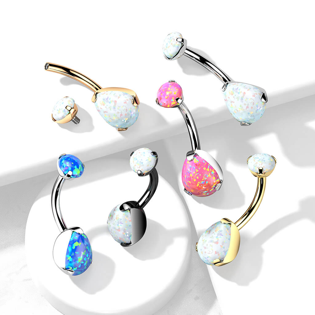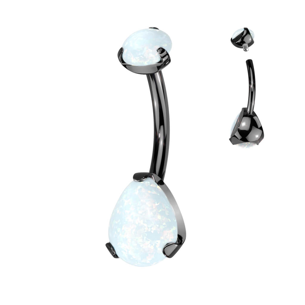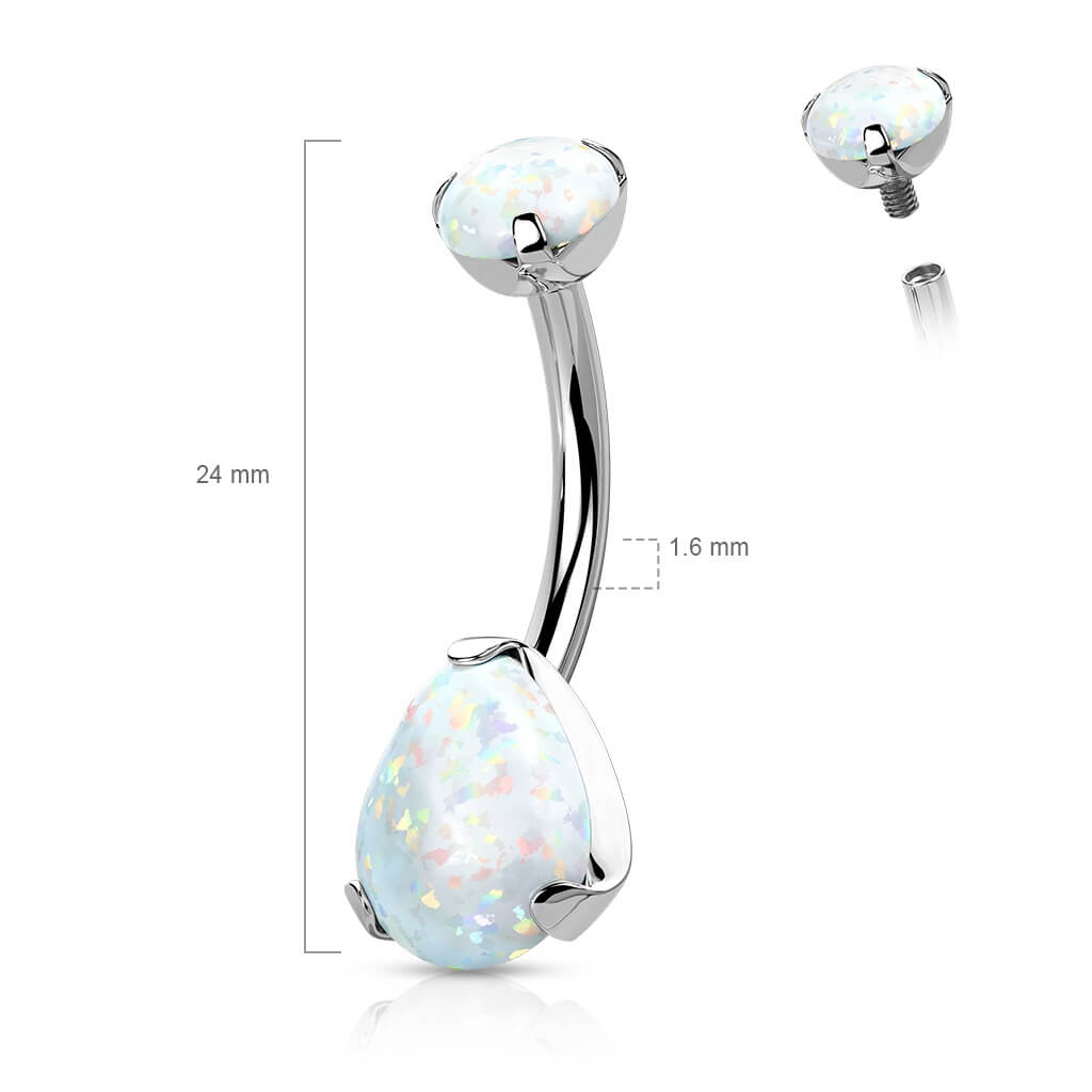 Titanio Piercing Ombelico Opale a goccia incastonato Filettatura Interna