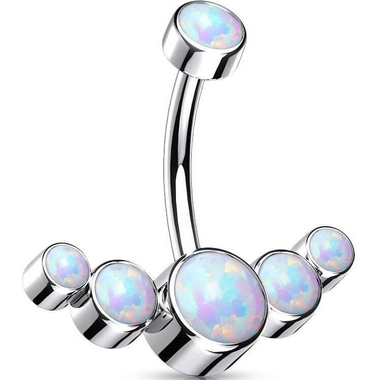 Titanio Piercing Ombelico Argento e 5 opali Filettatura Interna
