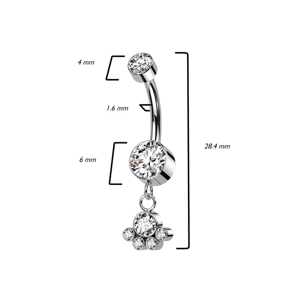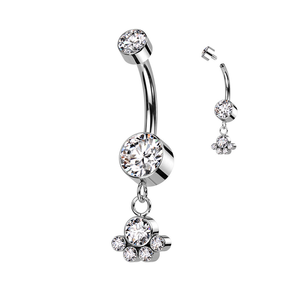 Titanio Piercing Ombelico Argento con pendente di zirconi Filettatura Interna