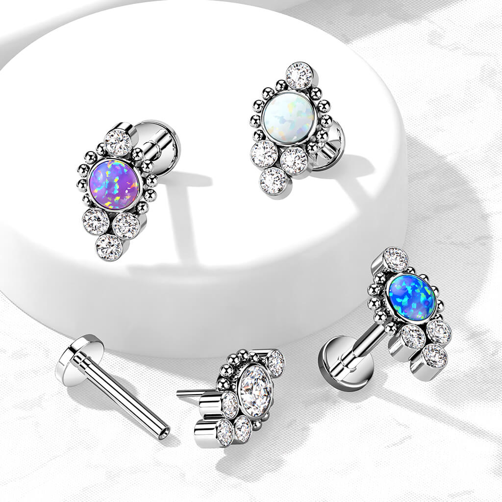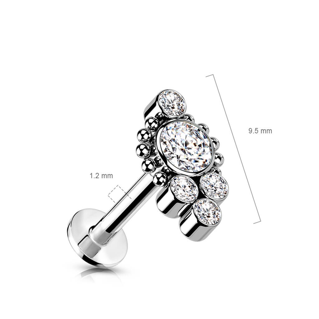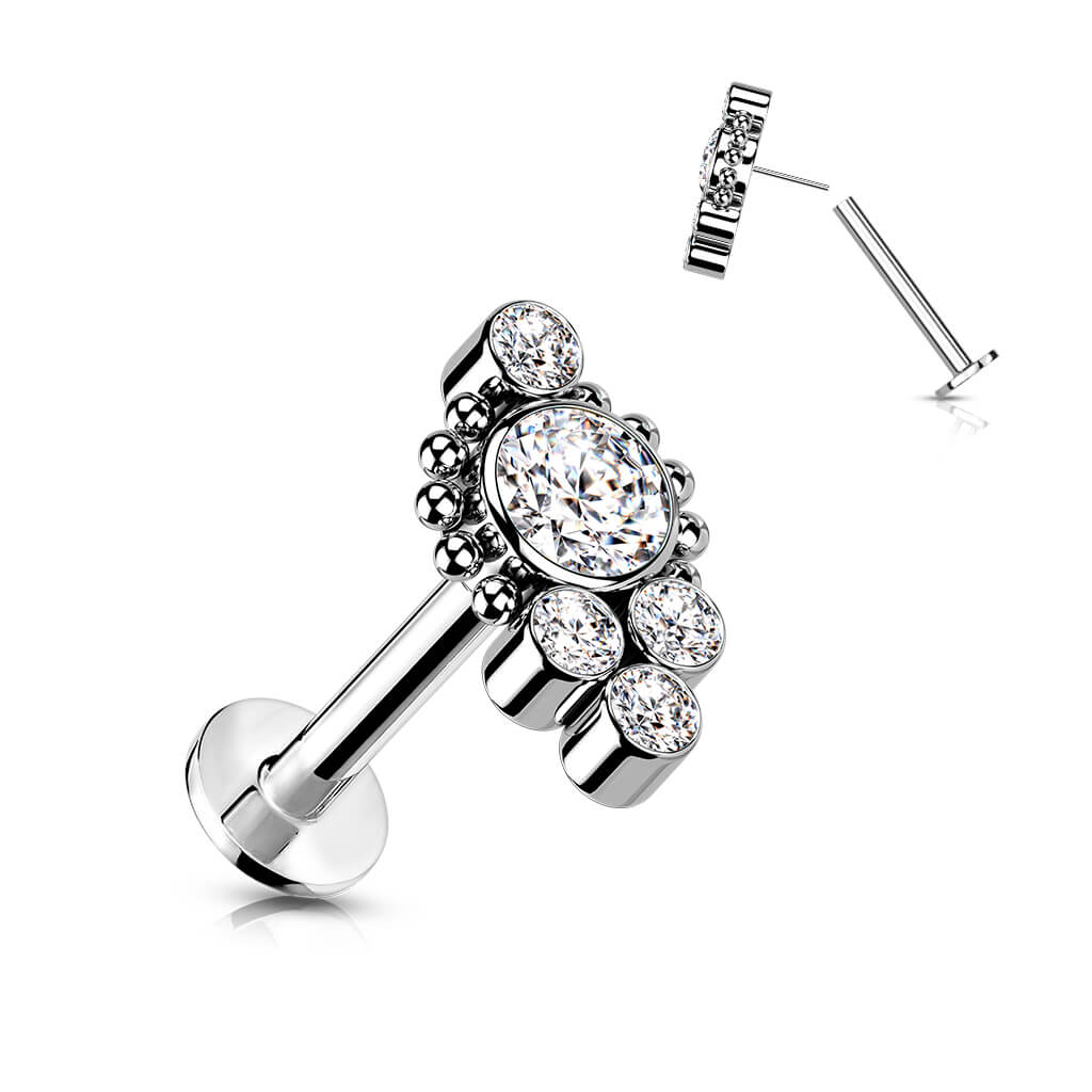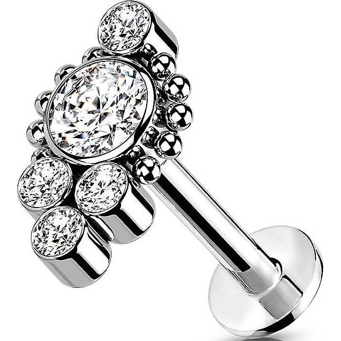 Titanio Labret 5 Zirconi e Argento Push-In
