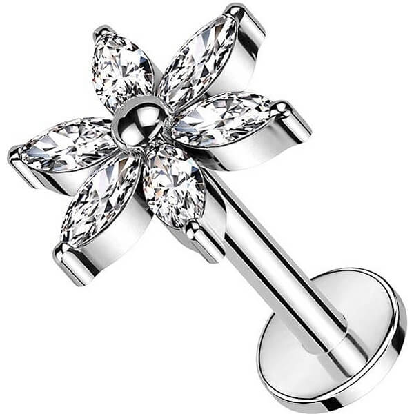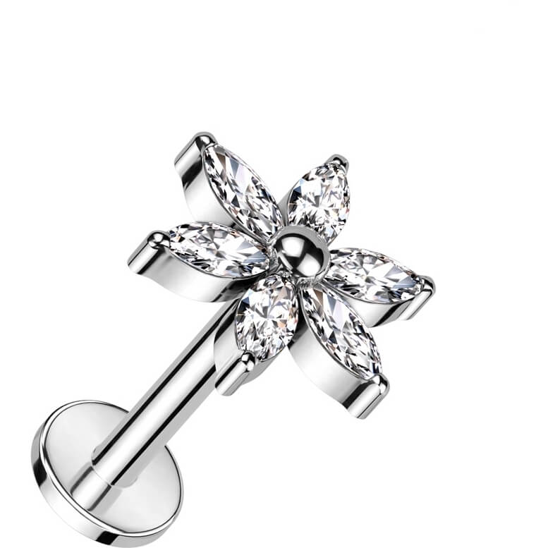 Titanio Labret Fiore di Zirconi Filettatura Interna