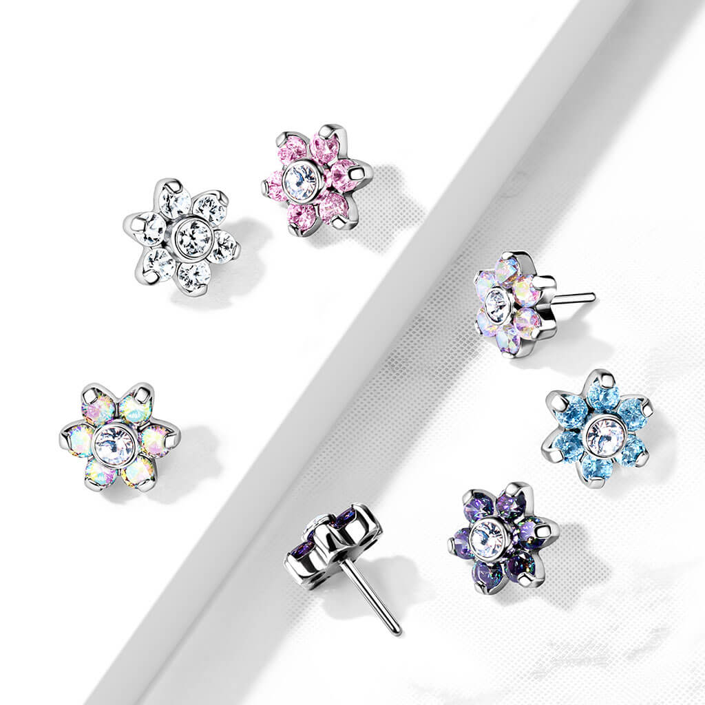 Titanio Superiore a fiore di zirconi e argento Push-In