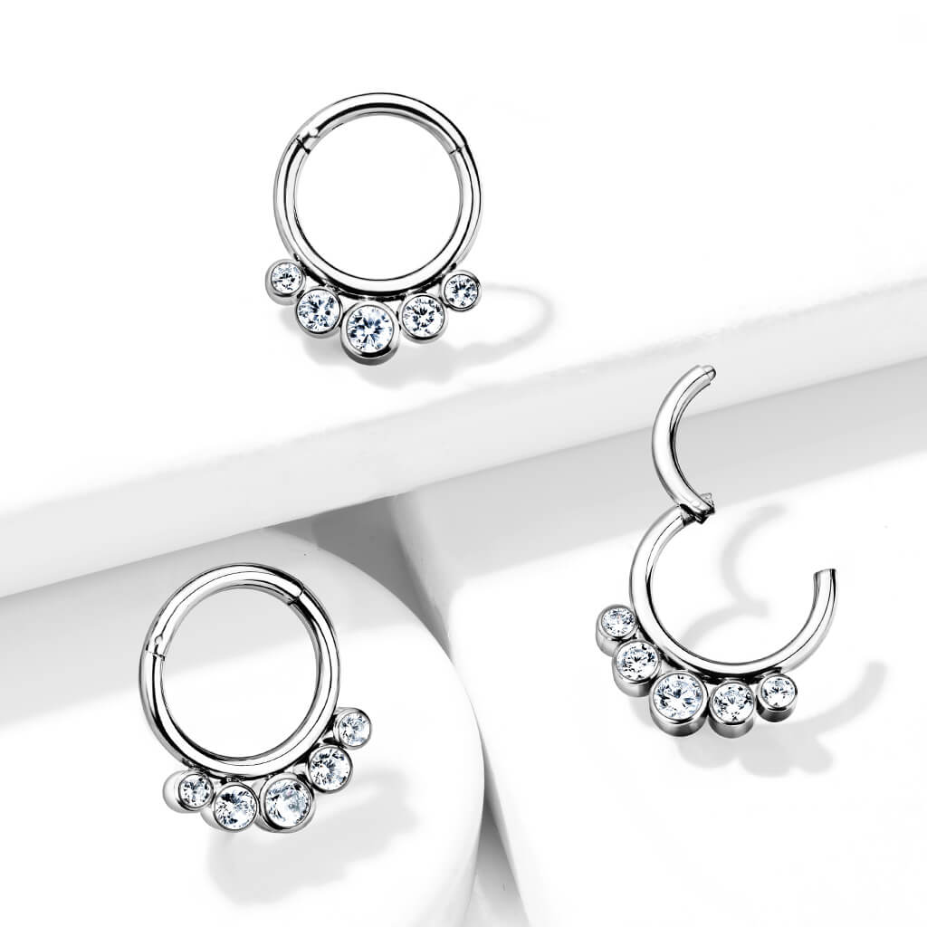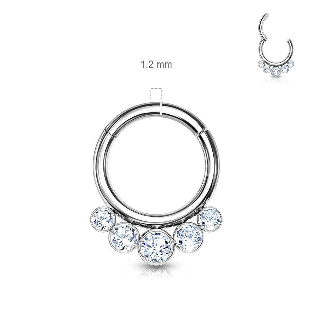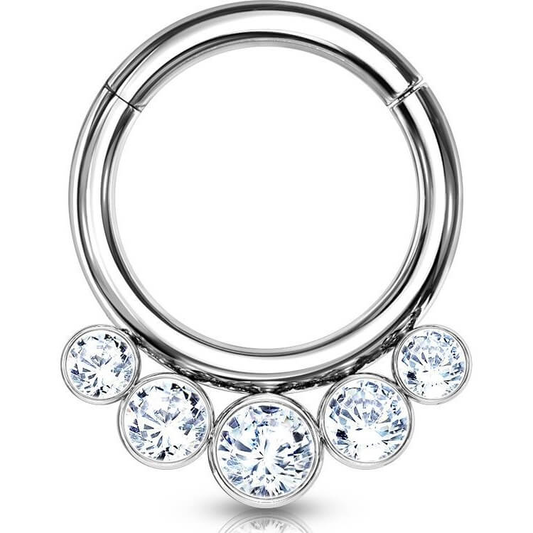Titanio Anello Piercing 5 Zirconi Clicker
