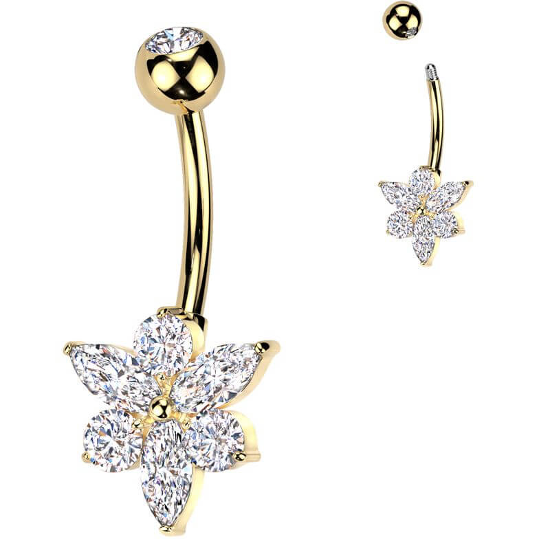 Belly Button Piercing titanium brass flower zirconia