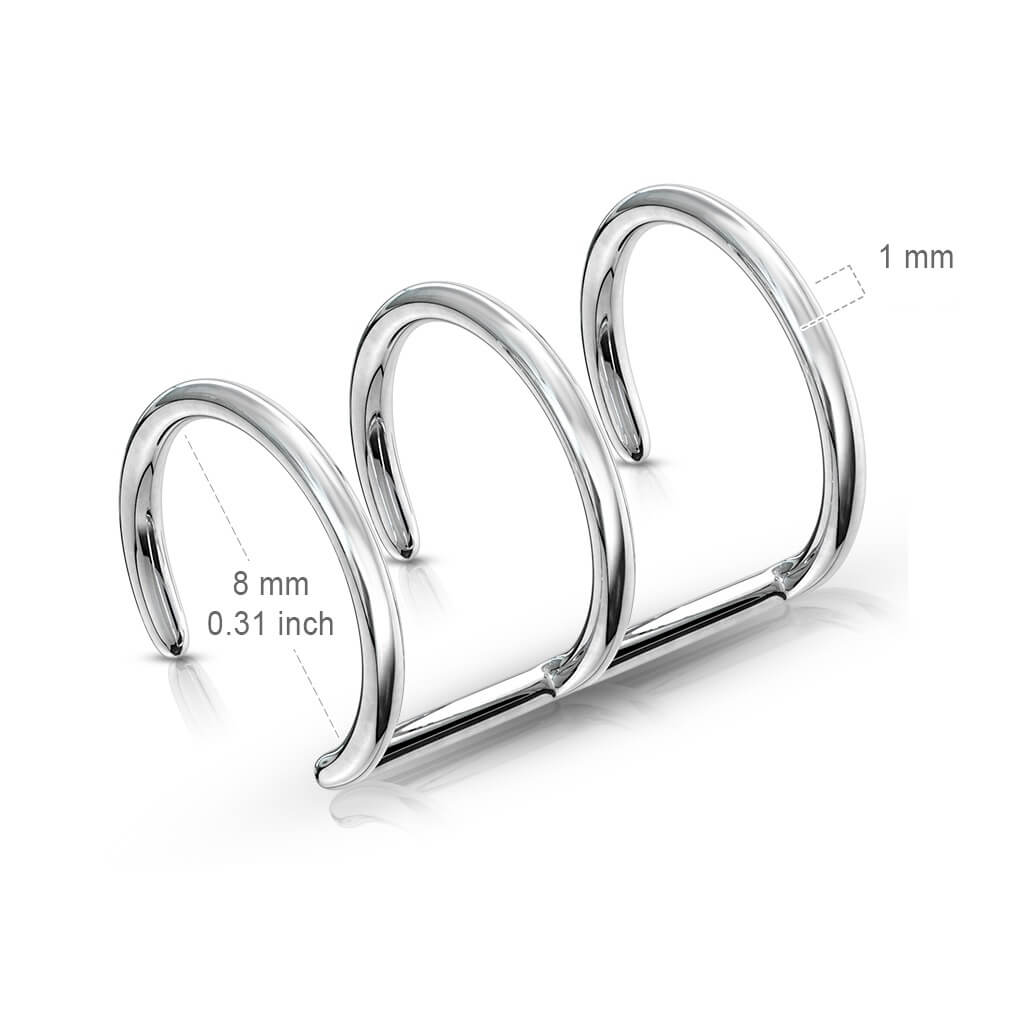 Fake piercing do ucha potrójny srebrny kolczyk rozginany