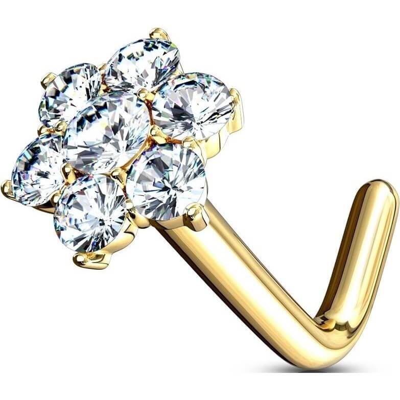 Złoto 585 kolczyk do nosa w kształcie litery l kwiatek cyrkonia