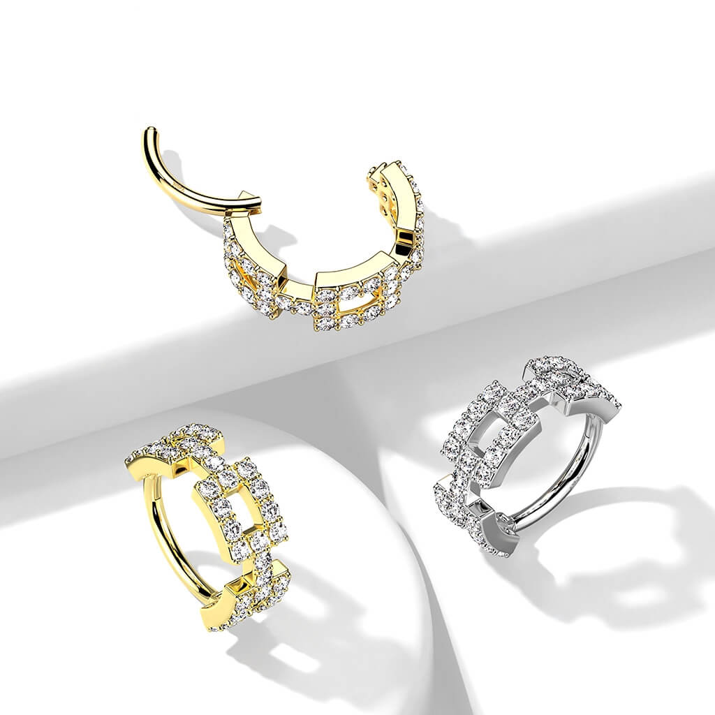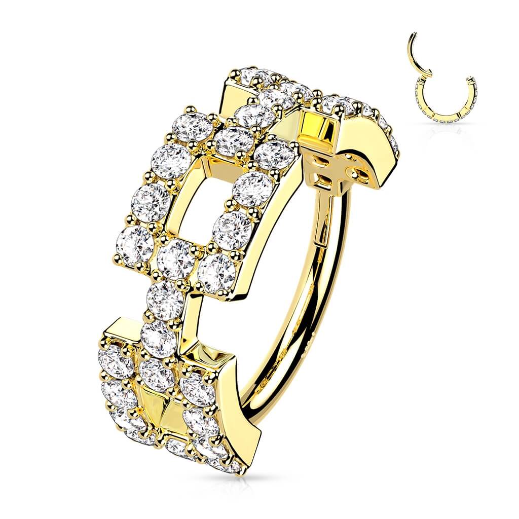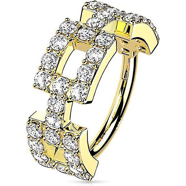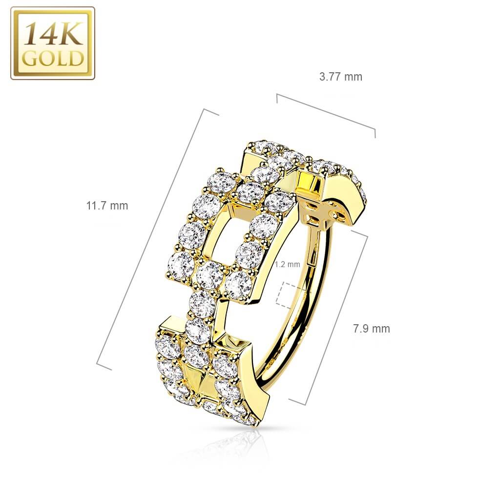 Złoto 585 kółko trójwymiarowe cyrkonia oprawa pave clicker