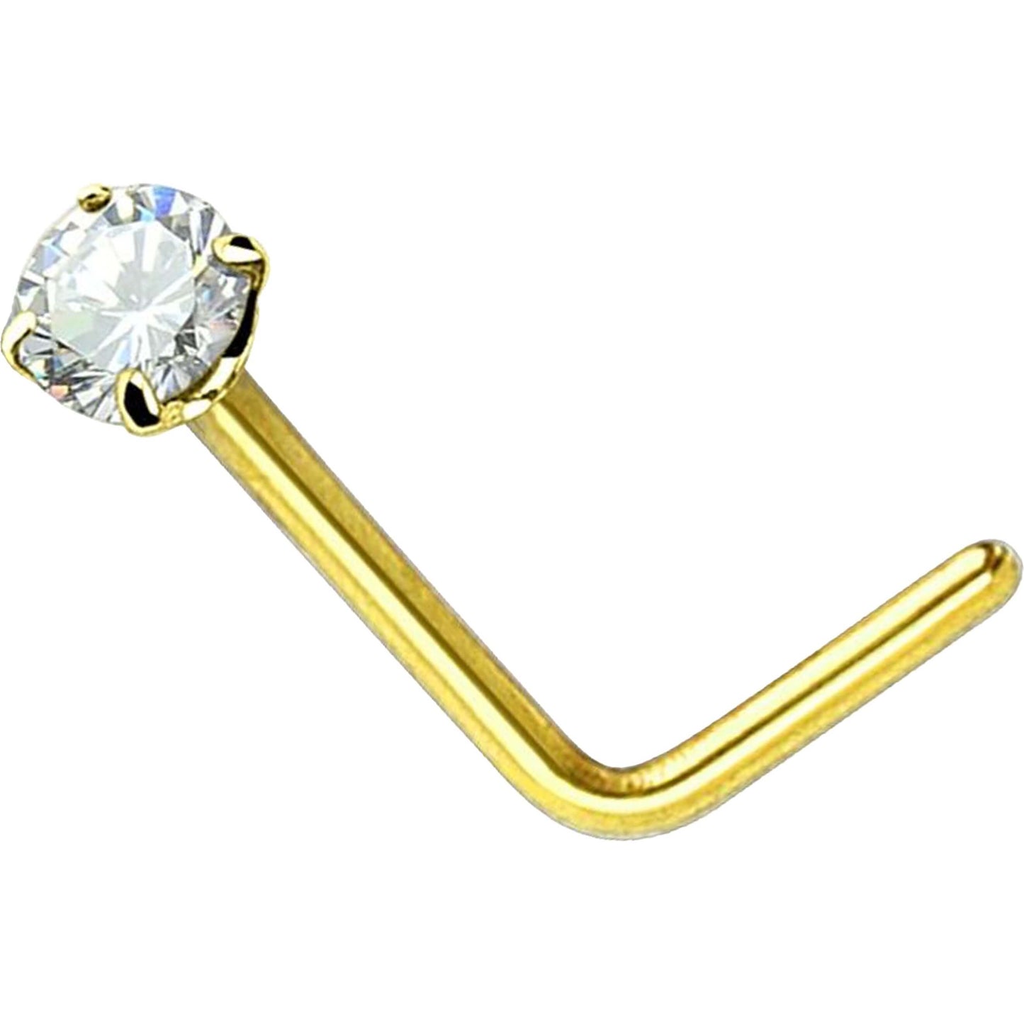 Kolczyk do nosa w kształcie litery l cyrkonia złoty