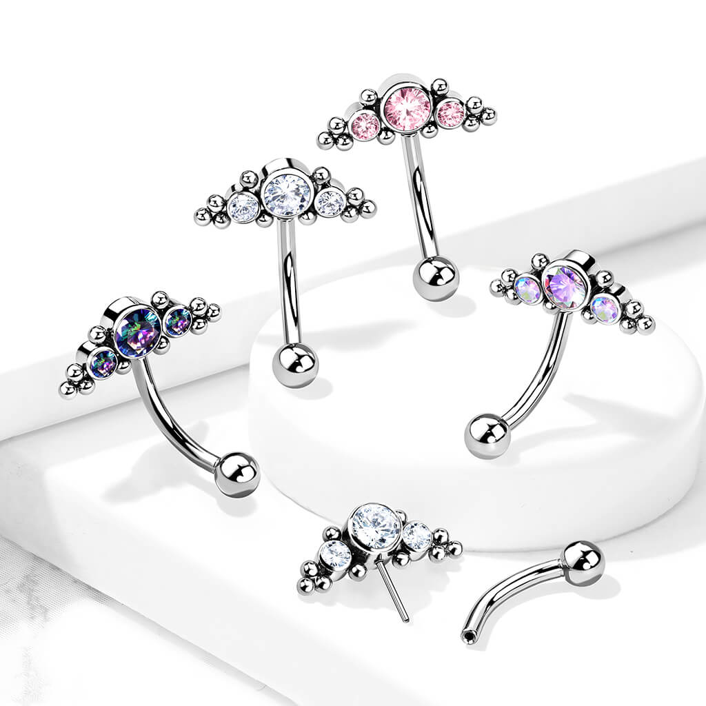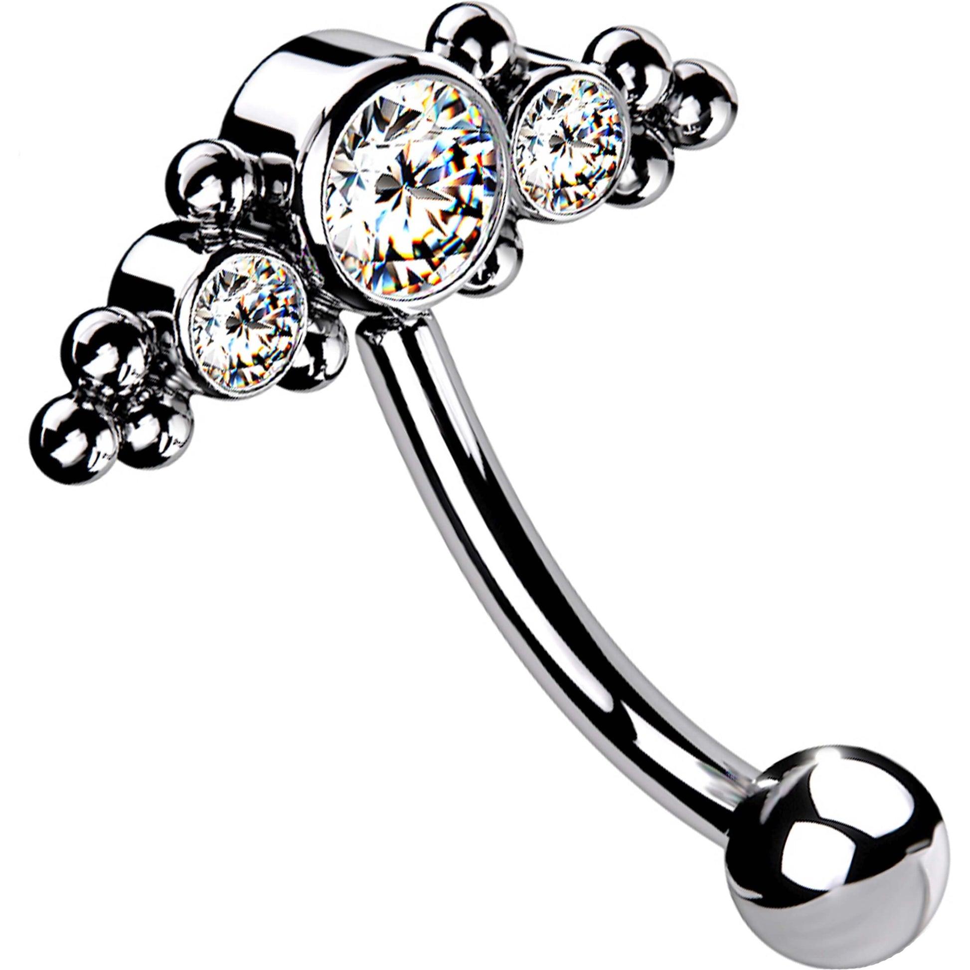 Tytan kolczyk do brwi 3 cyrkonii srebrny push-in