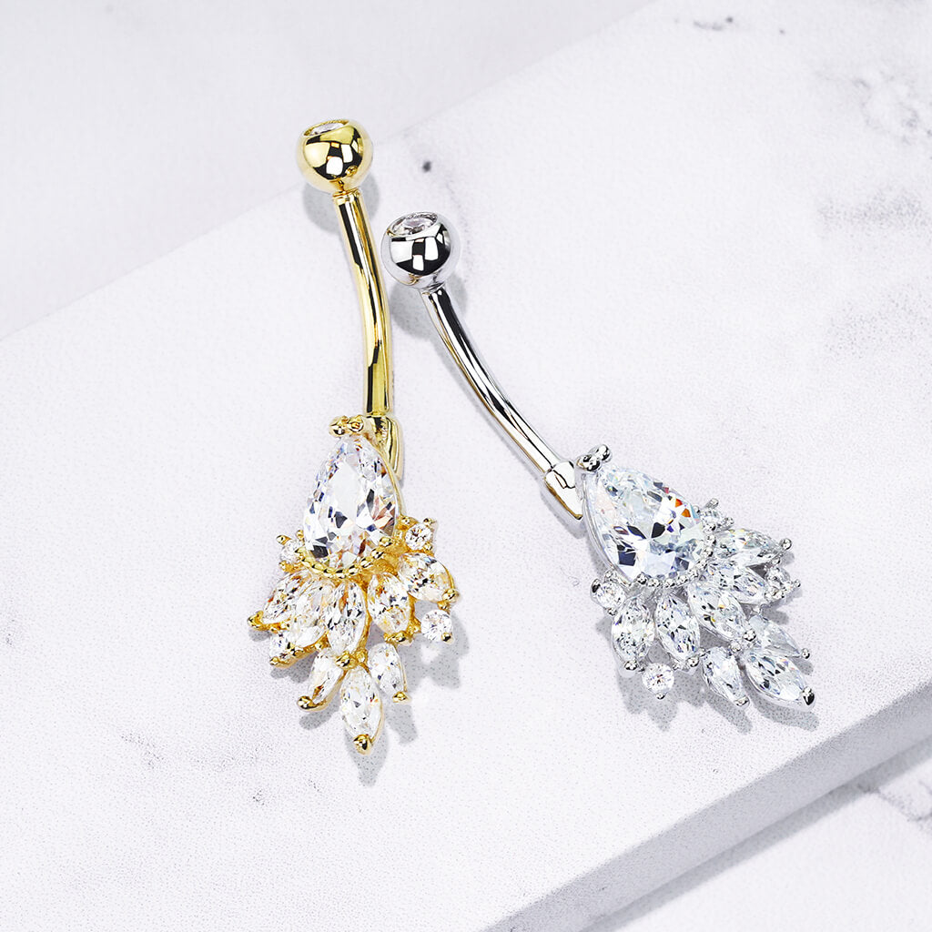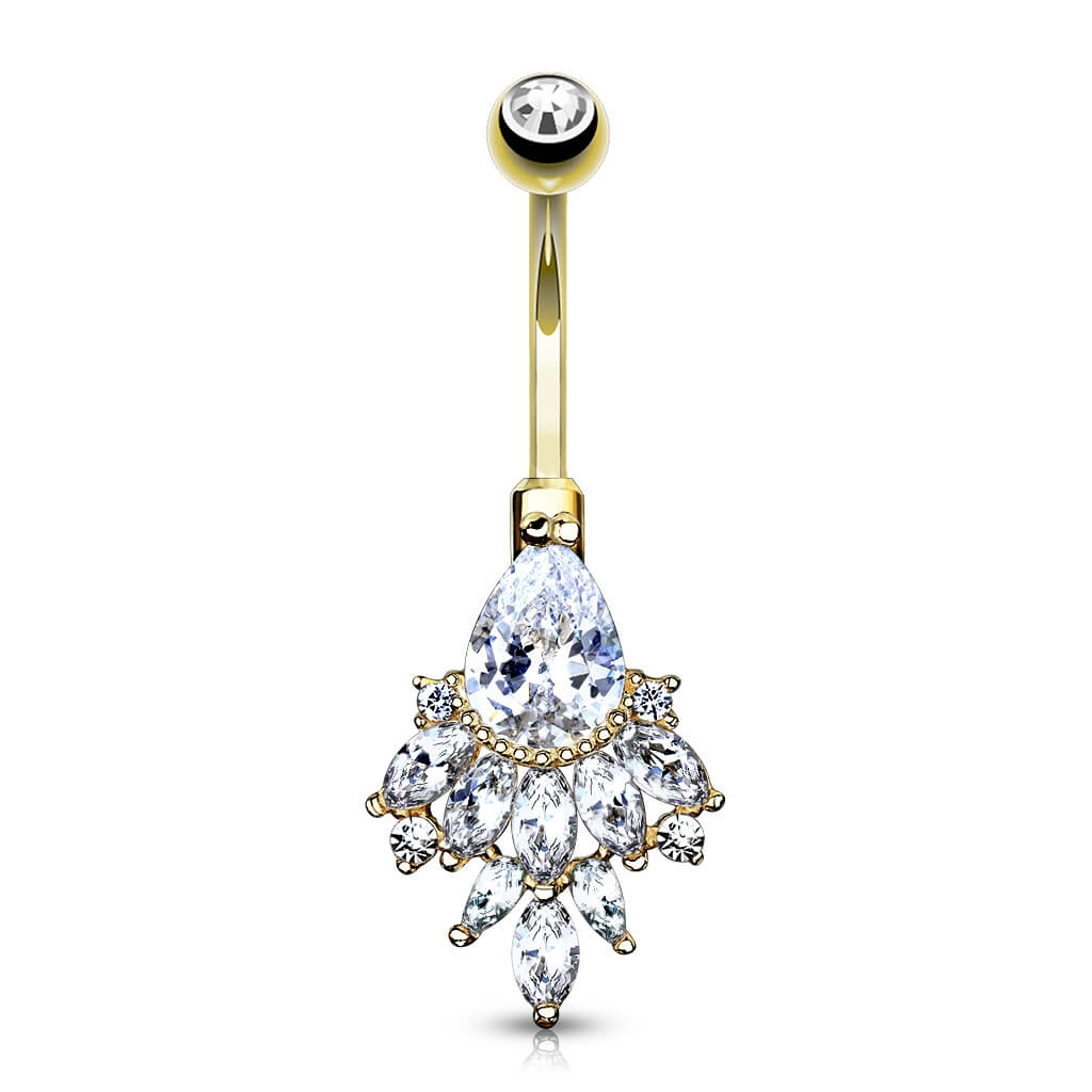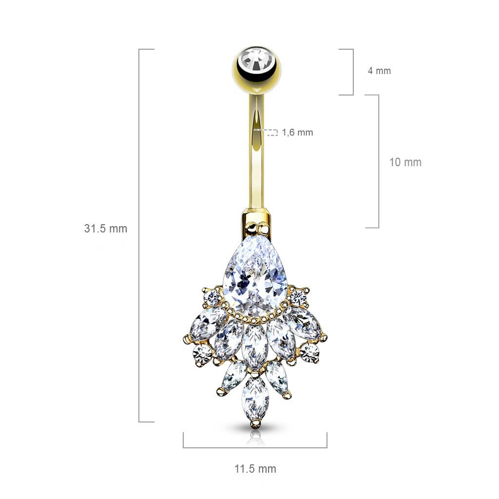 14 Karat Gold Bauchnabelpiercing Birne Zirkonia Gelbgold Weißgold