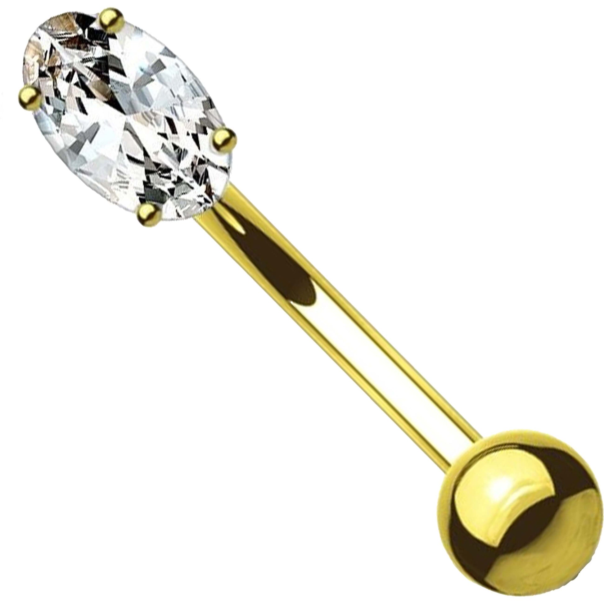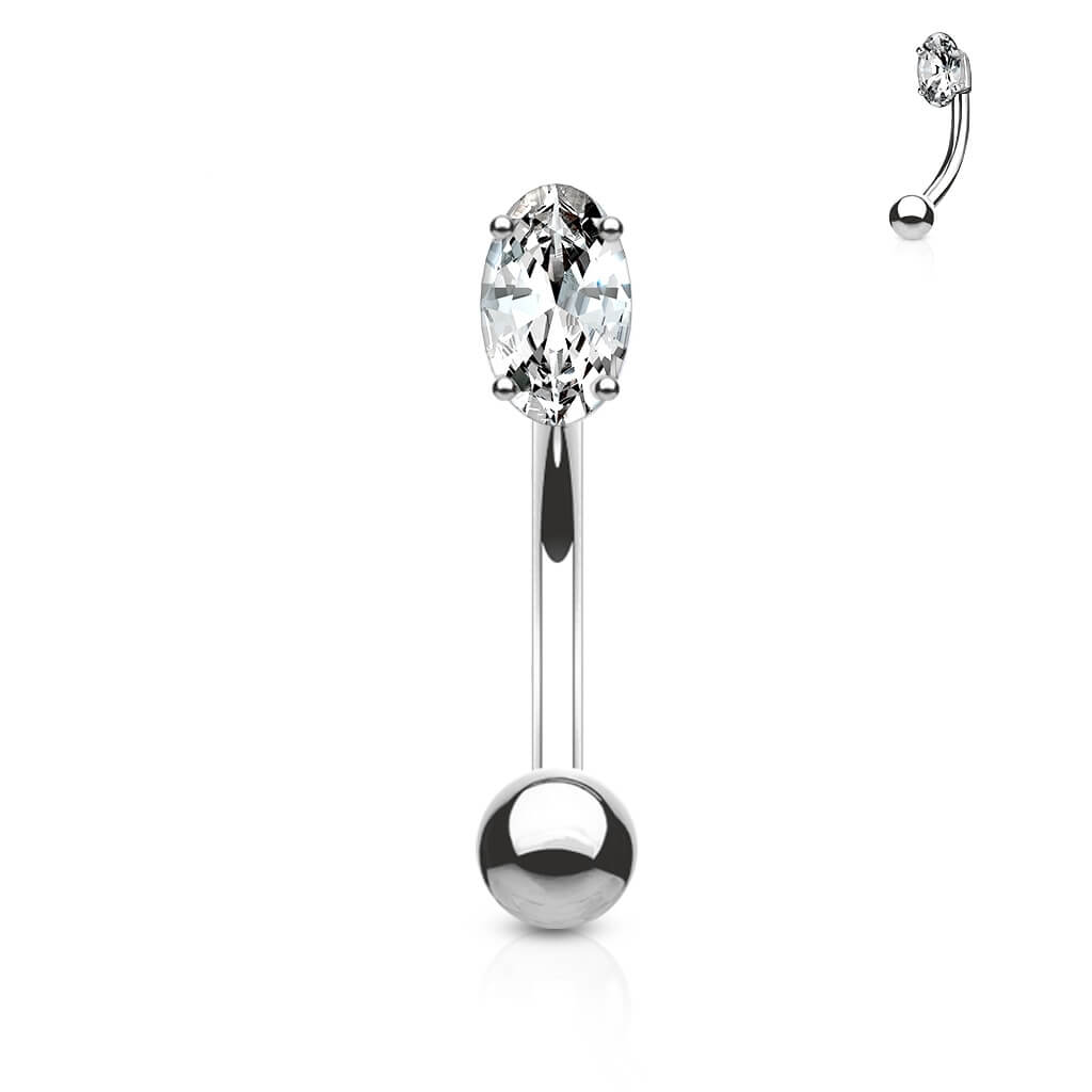 14 Karat Gold Augenbrauenpiercing Oval Zirkonia Gelbgold Weißgold