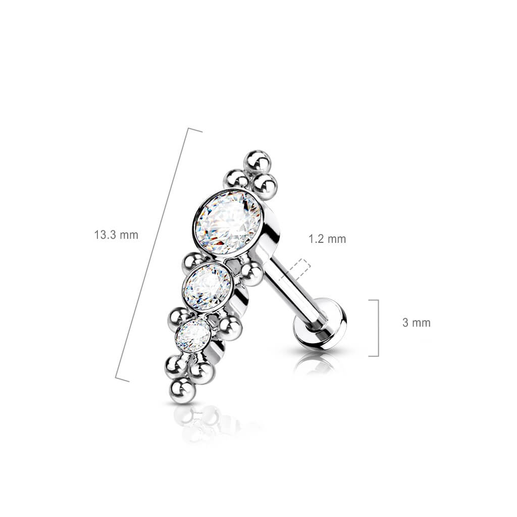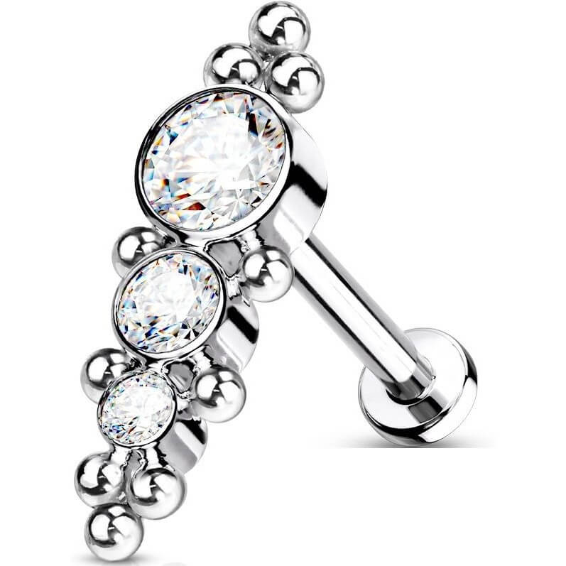 Titan Labret 3 Zirkonia Flach Silber Innengewinde